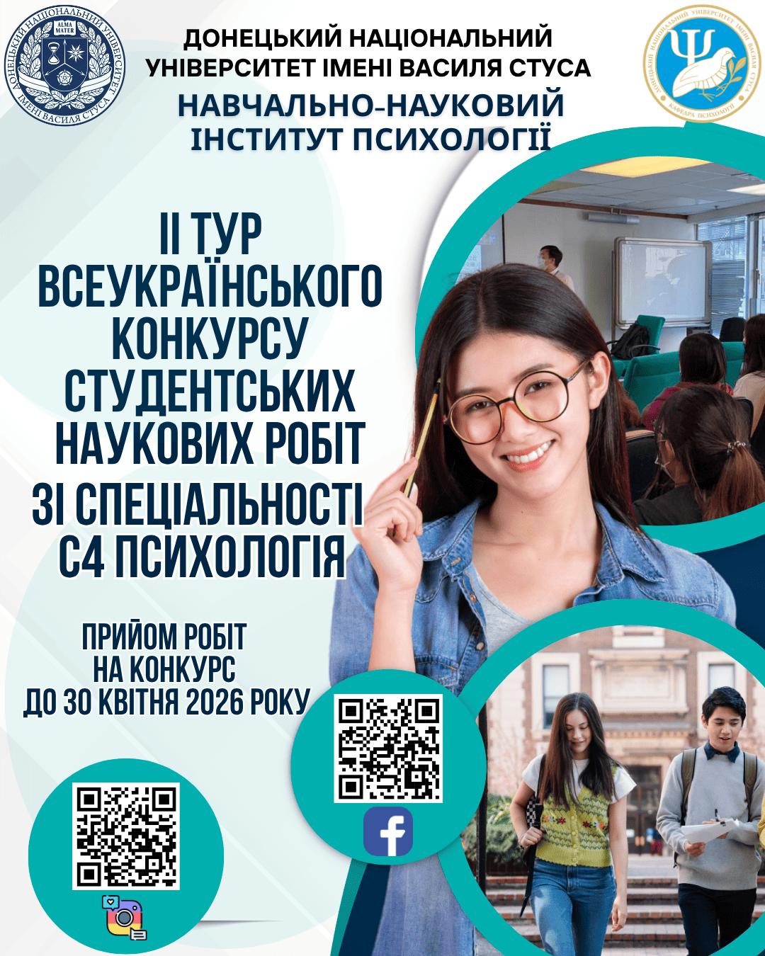 Запрошуємо вас взяти участь у ІІ турі Всеукраїнського конкурсу студентських наукових робіт з галузі знань «Соціальні науки, журналістика, інформація та міжнародні відносини», спеціальності С4 «Психологія»